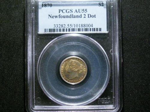 Newfoundland $2 "Gold" 1870 2 Dot PCGS AU55. Brilliant with good lustre.
