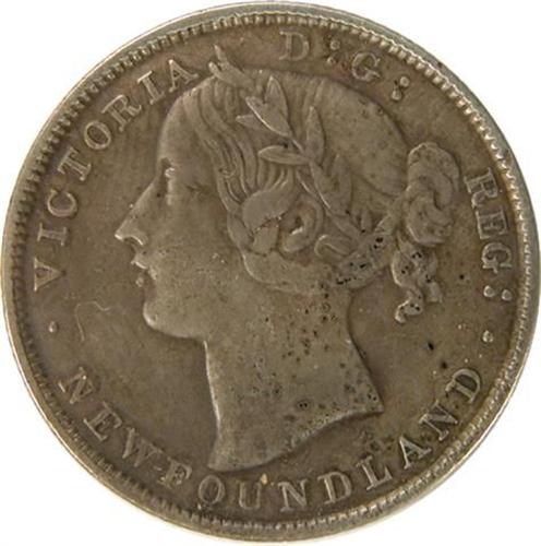 Newfoundland Twenty Cents 1870, VF Cleaned. Lightly retoned