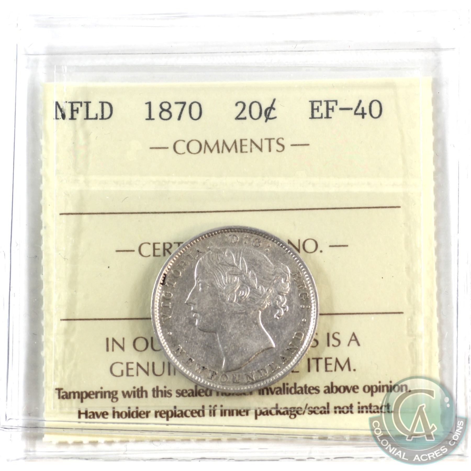 Newfoundland 20-cent 1870 ICCS Certified EF-40.