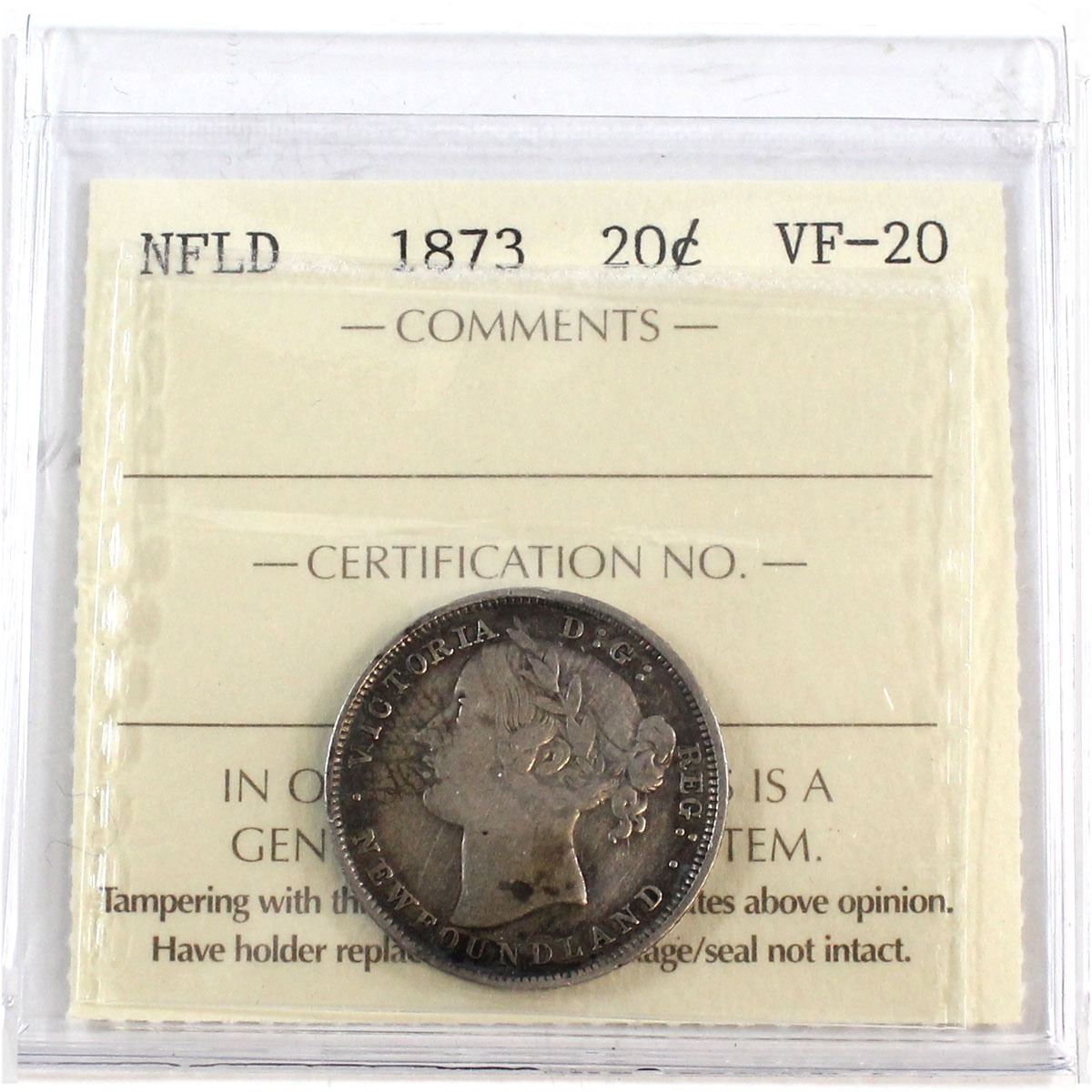 Newfoundland 20-cent 1873 ICCS Certified VF-20