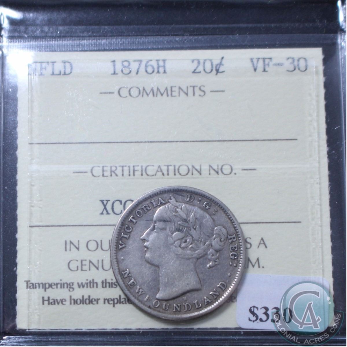 Newfoundland 20-cent 1876H ICCS Certified VF-30