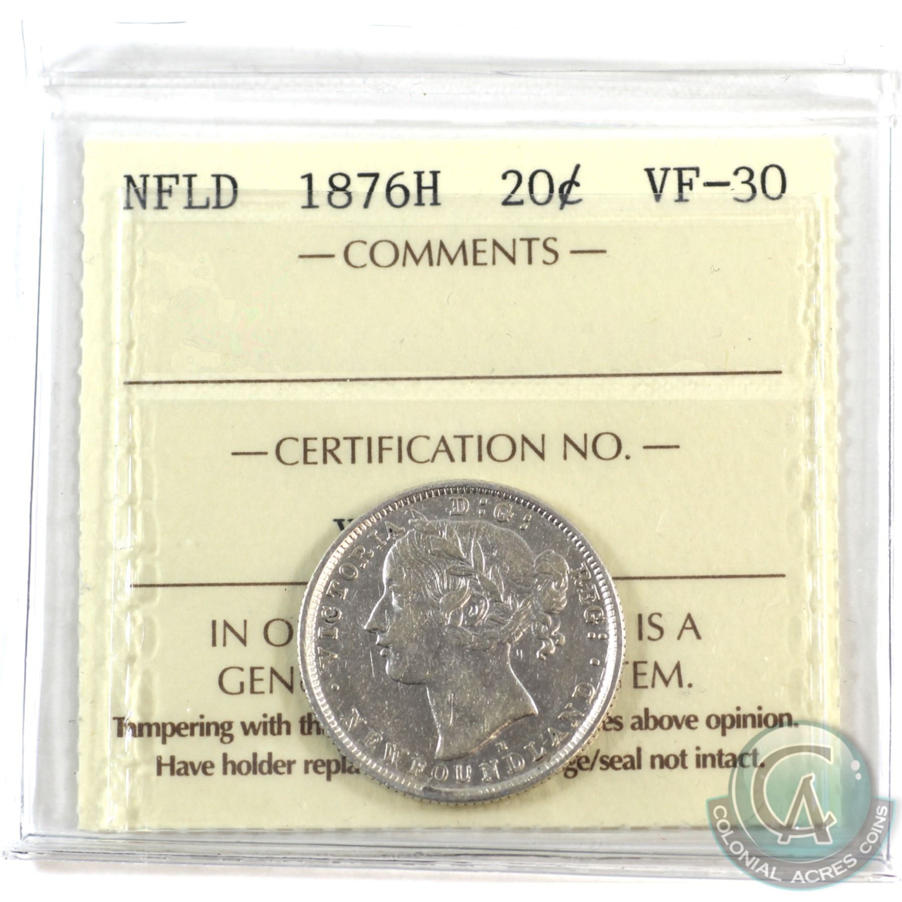 Newfoundland 20-cent 1876H ICCS Certified VF-30.