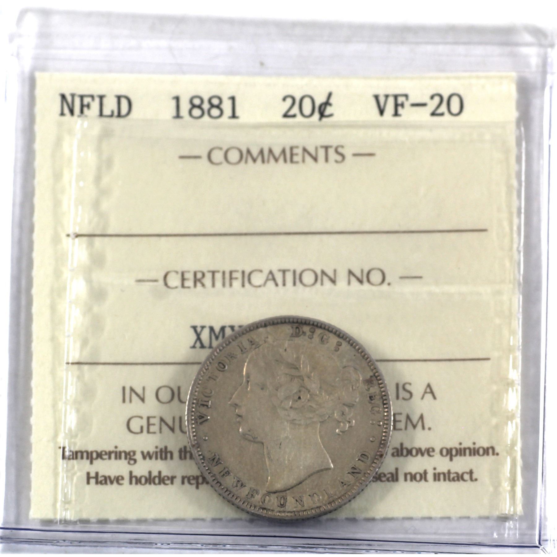 Newfoundland 20-cent 1881 ICCS Certified VF-20