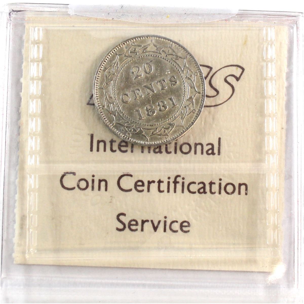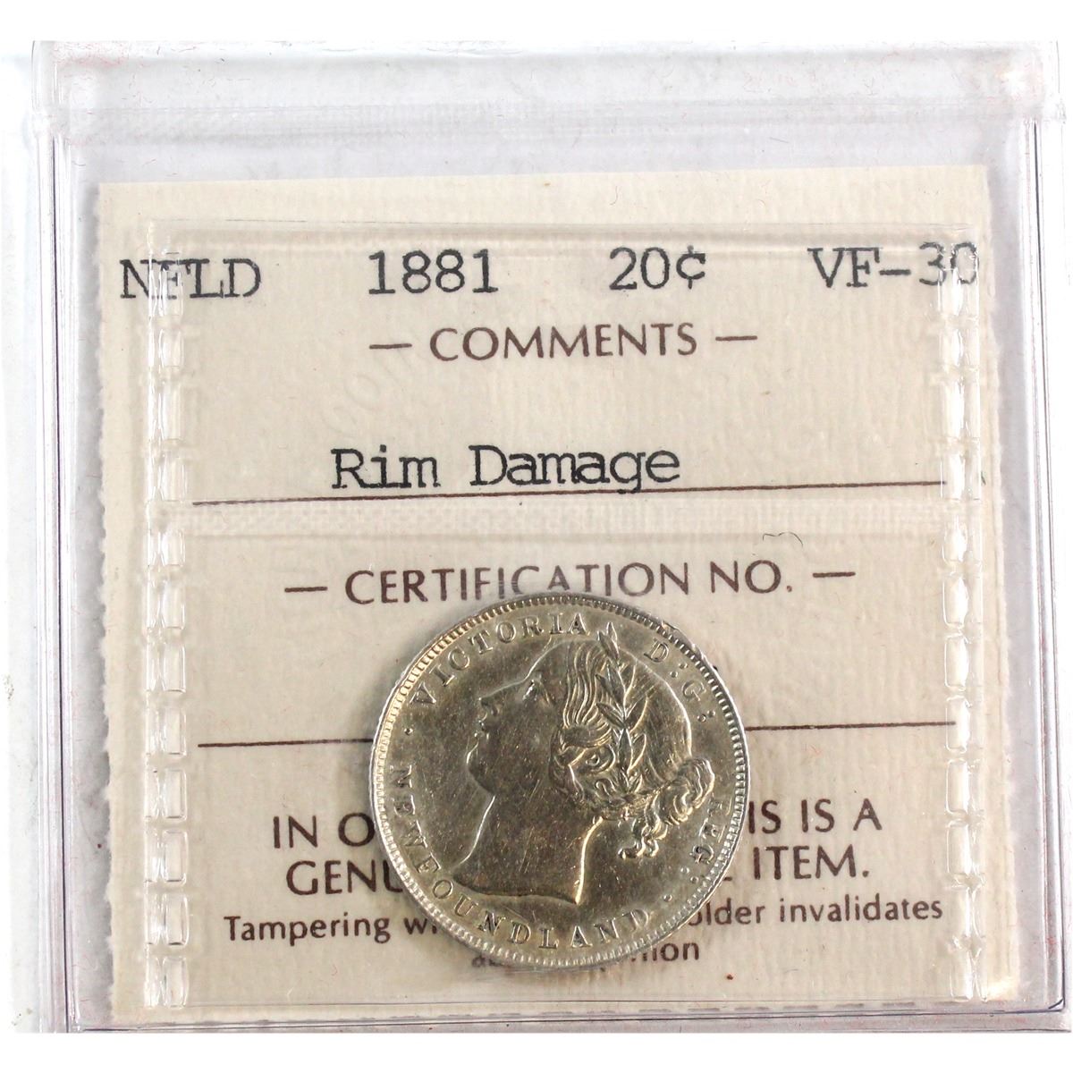 Newfoundland 20-cent 1881 ICCS Certified VF-30 (Rim Damage)