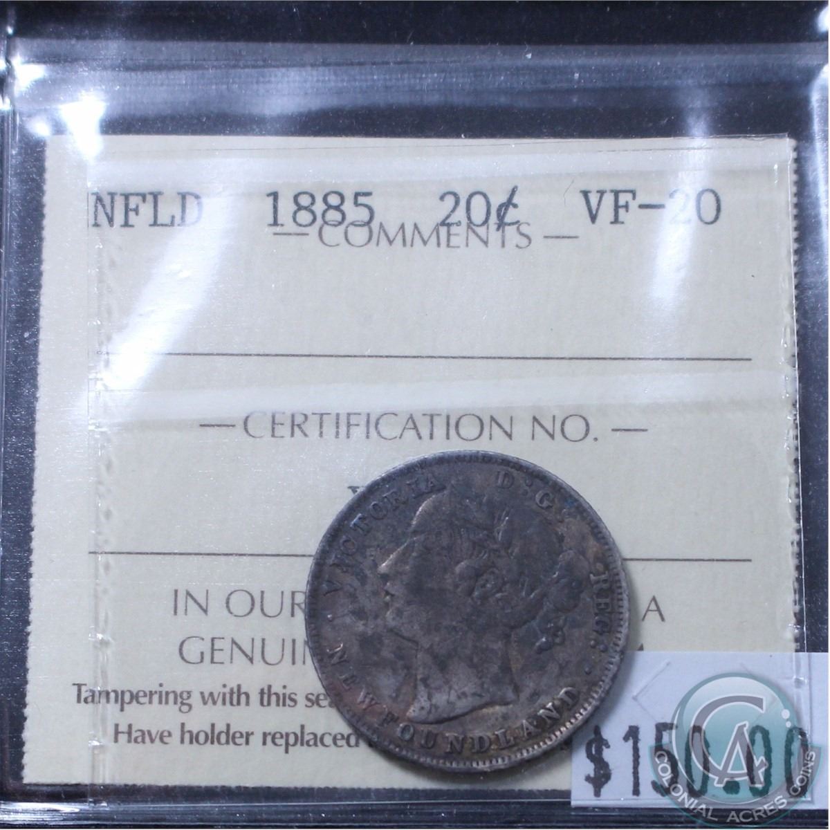 Newfoundland 20-cent 1885 ICCS Certified VF-20