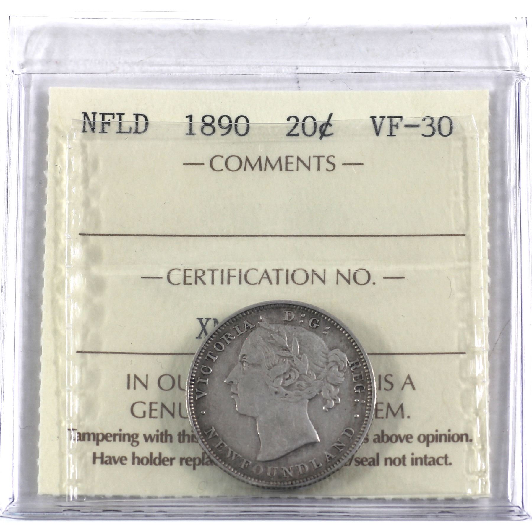 Newfoundland 20-cent 1890 ICCS Certified VF-30