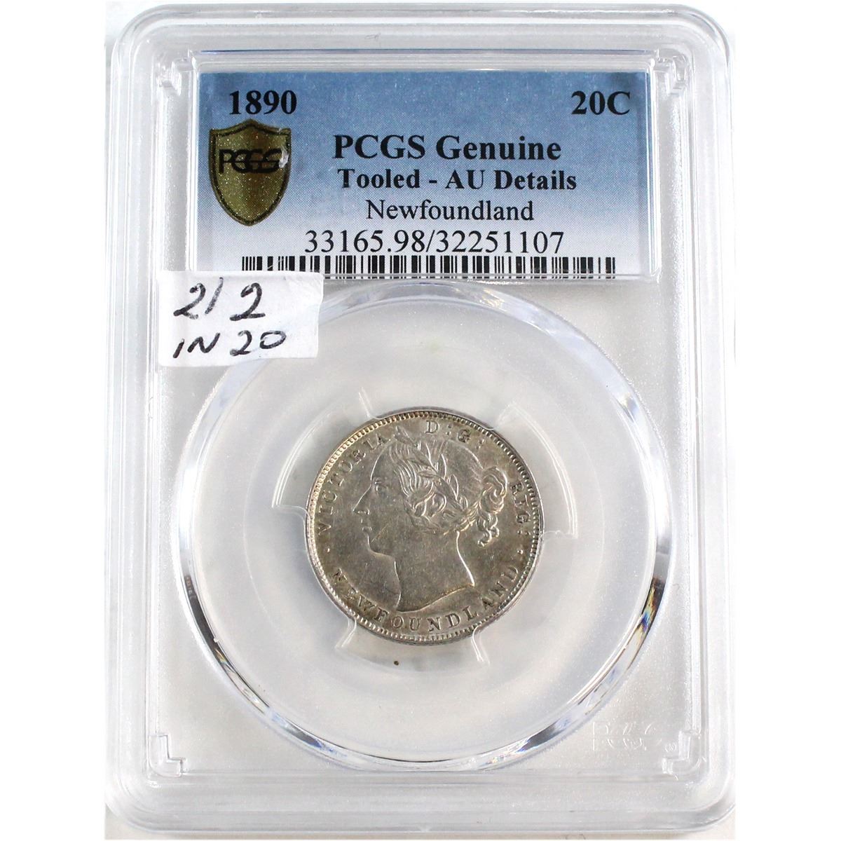 Newfoundland 20-cent 1890 Repunched 2 in 20 Cents PCGS Tooled AU Details