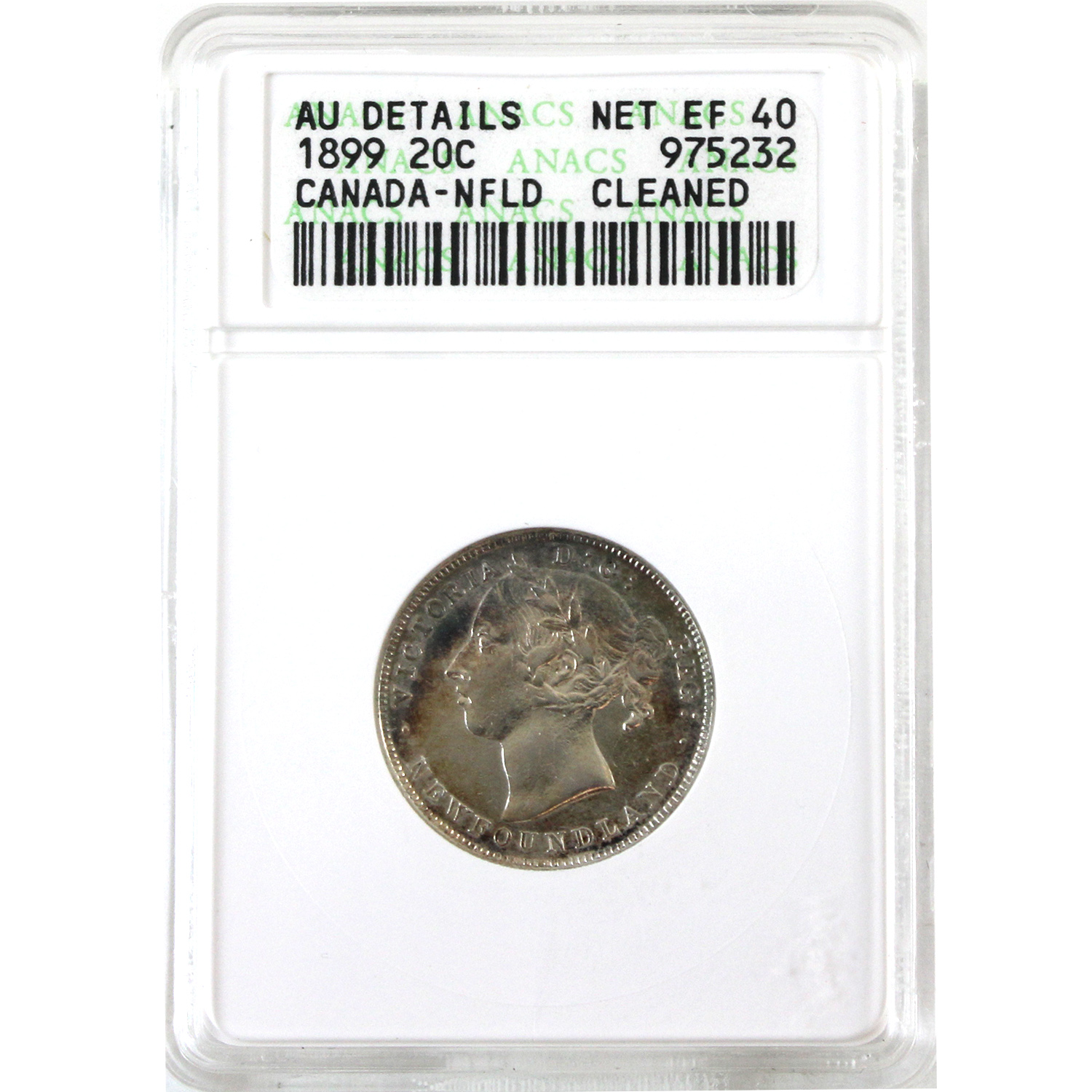 Newfoundland 20-cent 1899 ANACS EF40 (Cleaned)