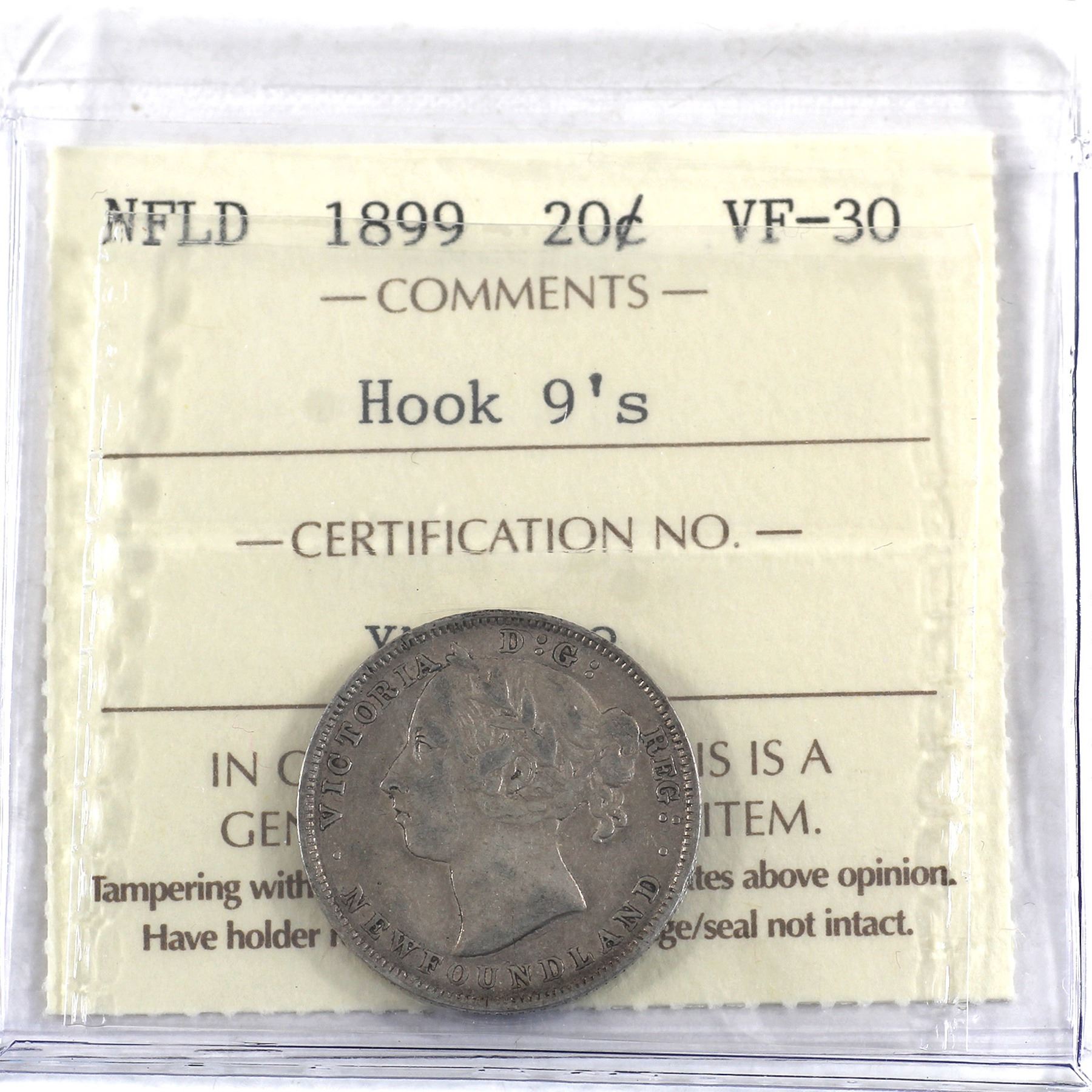 Newfoundland 20-cent 1899 Hook 9's ICCS Certified VF-30!