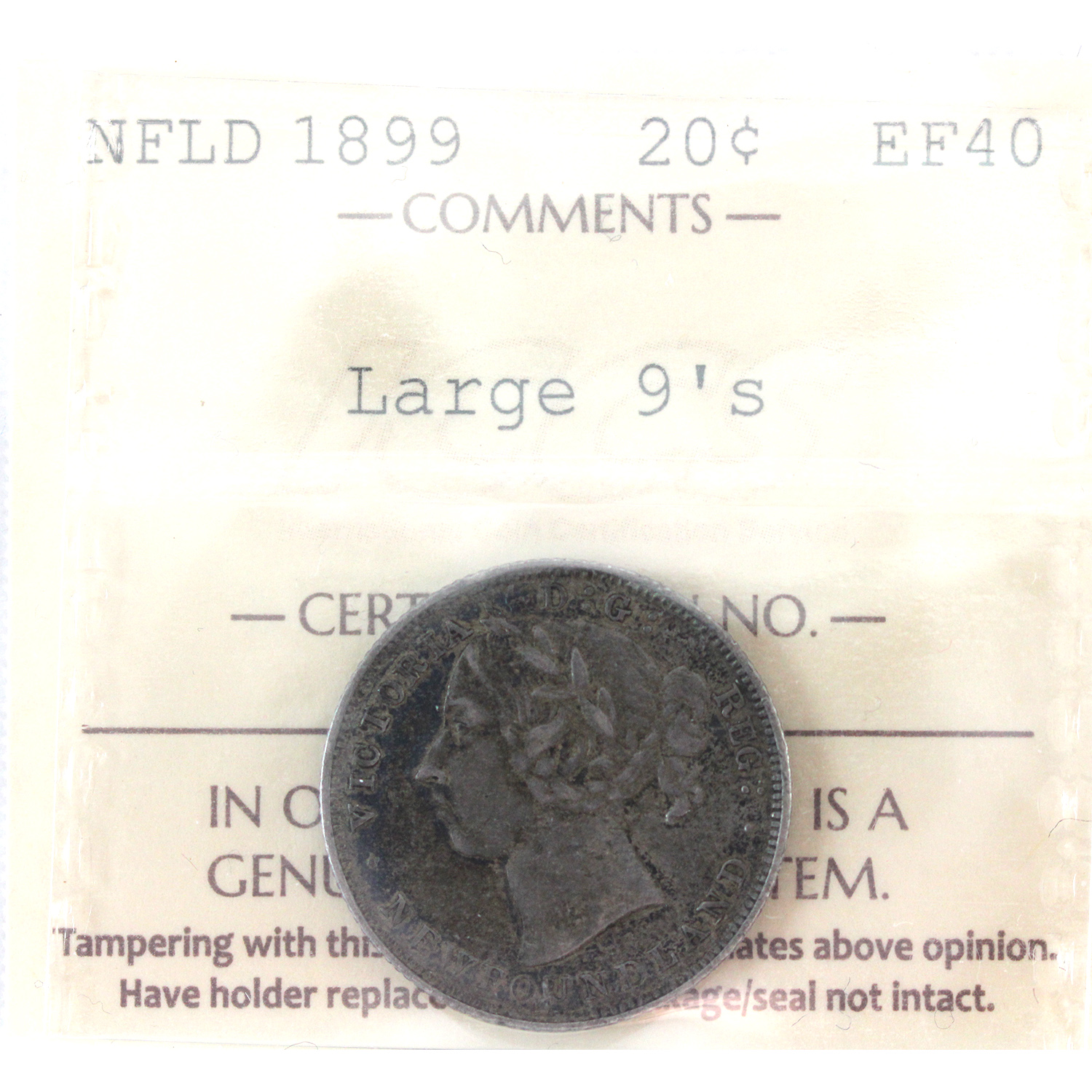 Newfoundland 20-cent 1899 Large 9's ICCS EF40