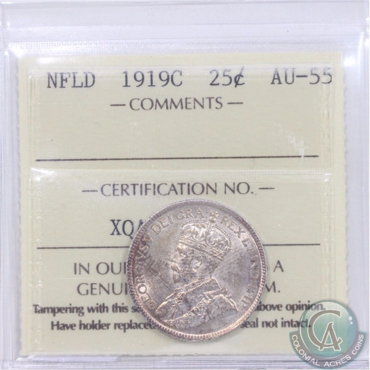 Newfoundland 25-cent 1919C ICCS Certified AU-55