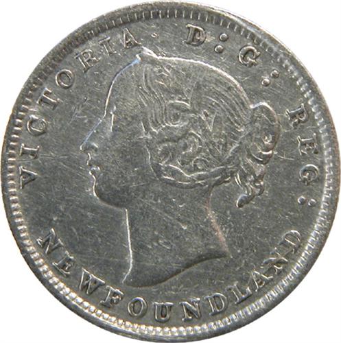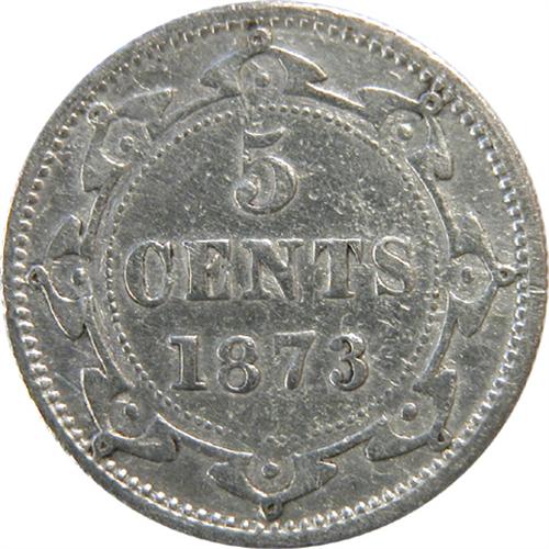 Newfoundland Five Cents 1873 Obverse 2 ICCS VF-30. This is a rather sharp and near untoned example. It is tied as the eighth highest graded by ICCS