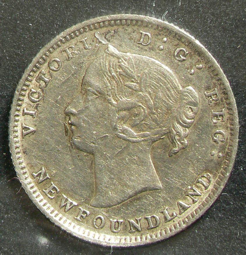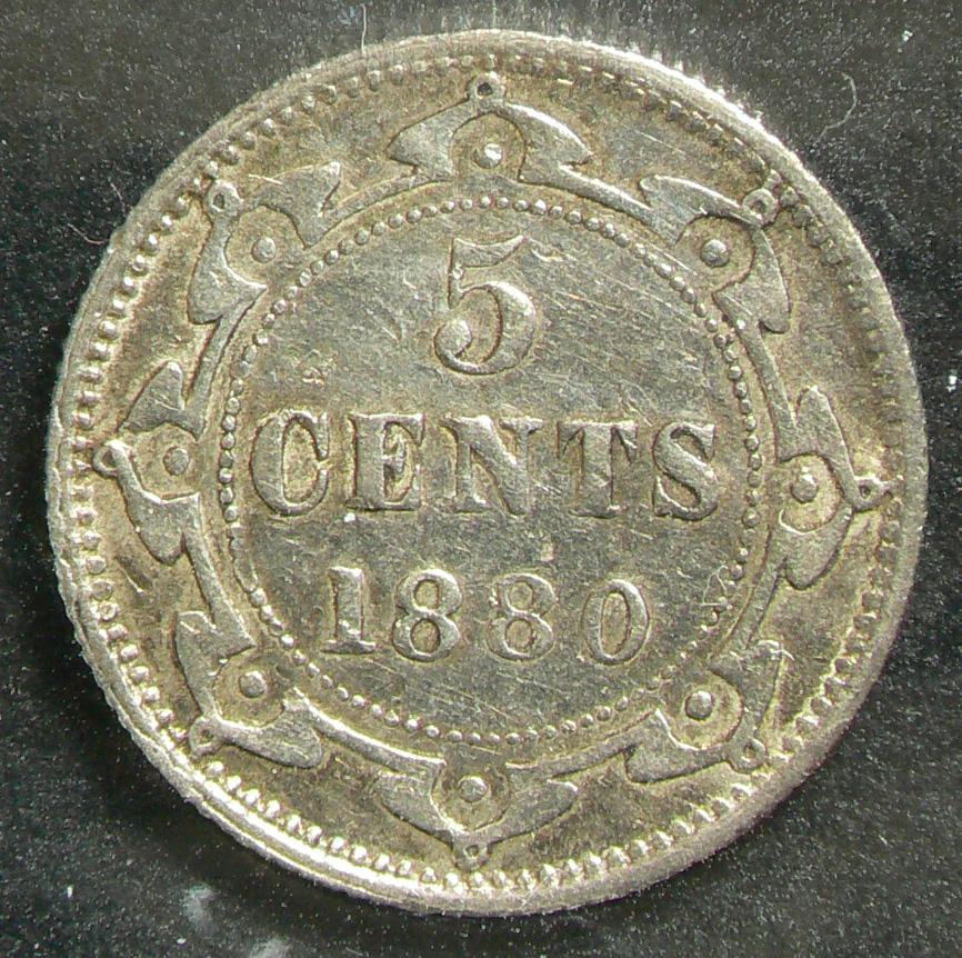 Newfoundland 5 Cents 1880, graded CCCS EF-40; Scratches, Marks.