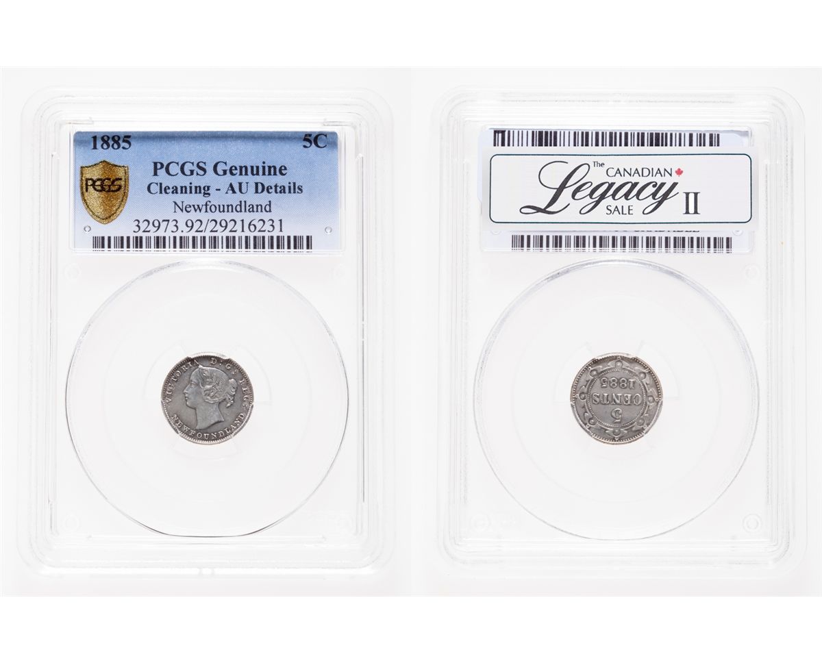 1885. PCGS graded About Uncirculated Details. (Note: cleaning).