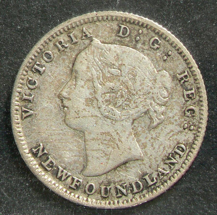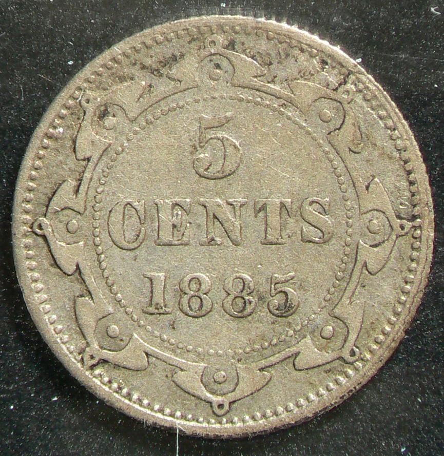 Newfoundland 5 Cents 1885, graded CCCS F-15.