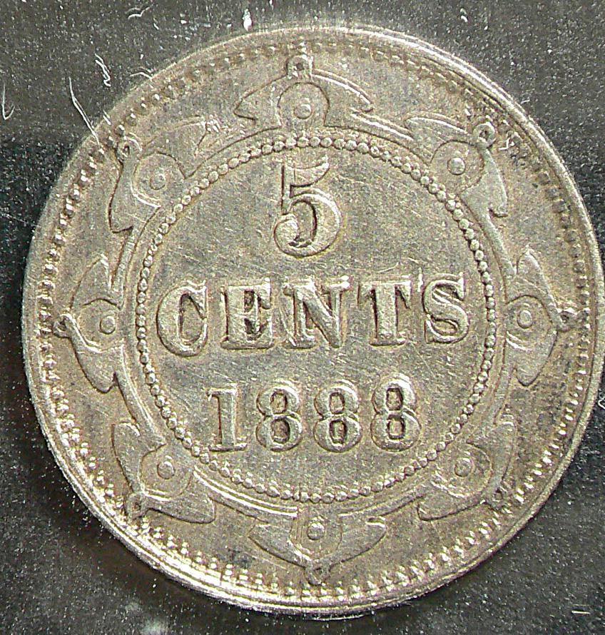 Newfoundland 5 Cents 1888, graded CCCS VF-20; Obverse 3.