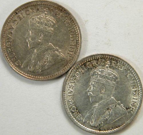 Newfoundland Five Cents 1912 and 1917C, both EF+. Two pale toned pieces with much remaining lustre