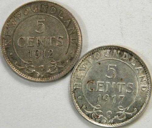 Newfoundland 5 Cents 1912 and 1917C, EF