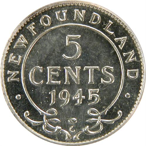 Newfoundland Five Cents 1945C PCGS MS-65. A fully struck and superbly lustrous near untoned piece