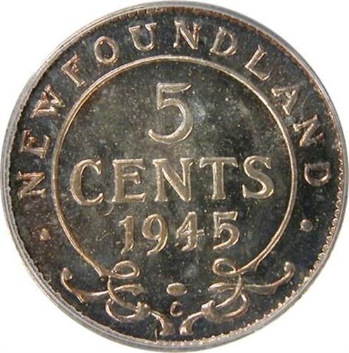 Newfoundland Five Cents 1945C PCGS MS-65. Light amber toning