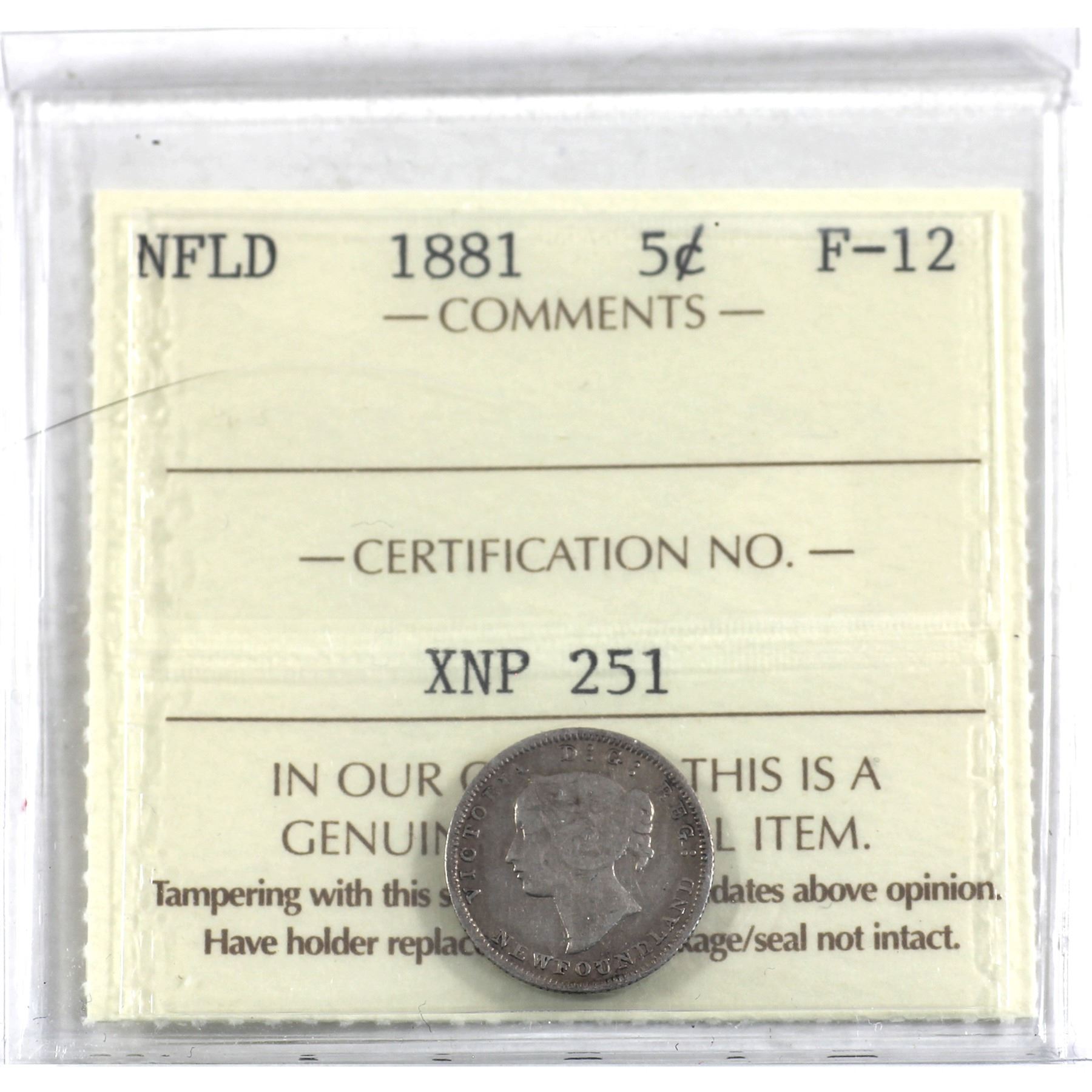 Newfoundland 5-cent 1881 ICCS Certified F-12