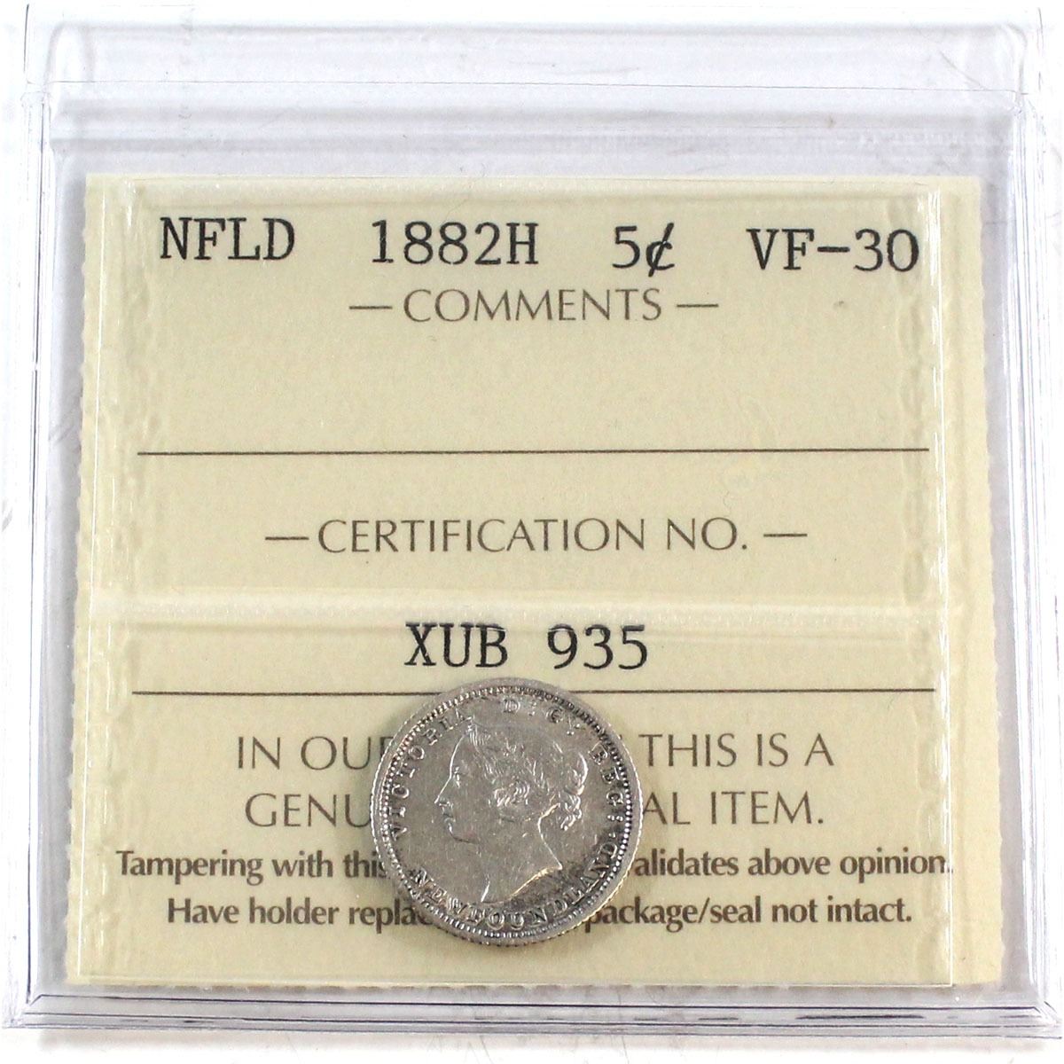Newfoundland 5-cent 1882H ICCS Certified VF-30