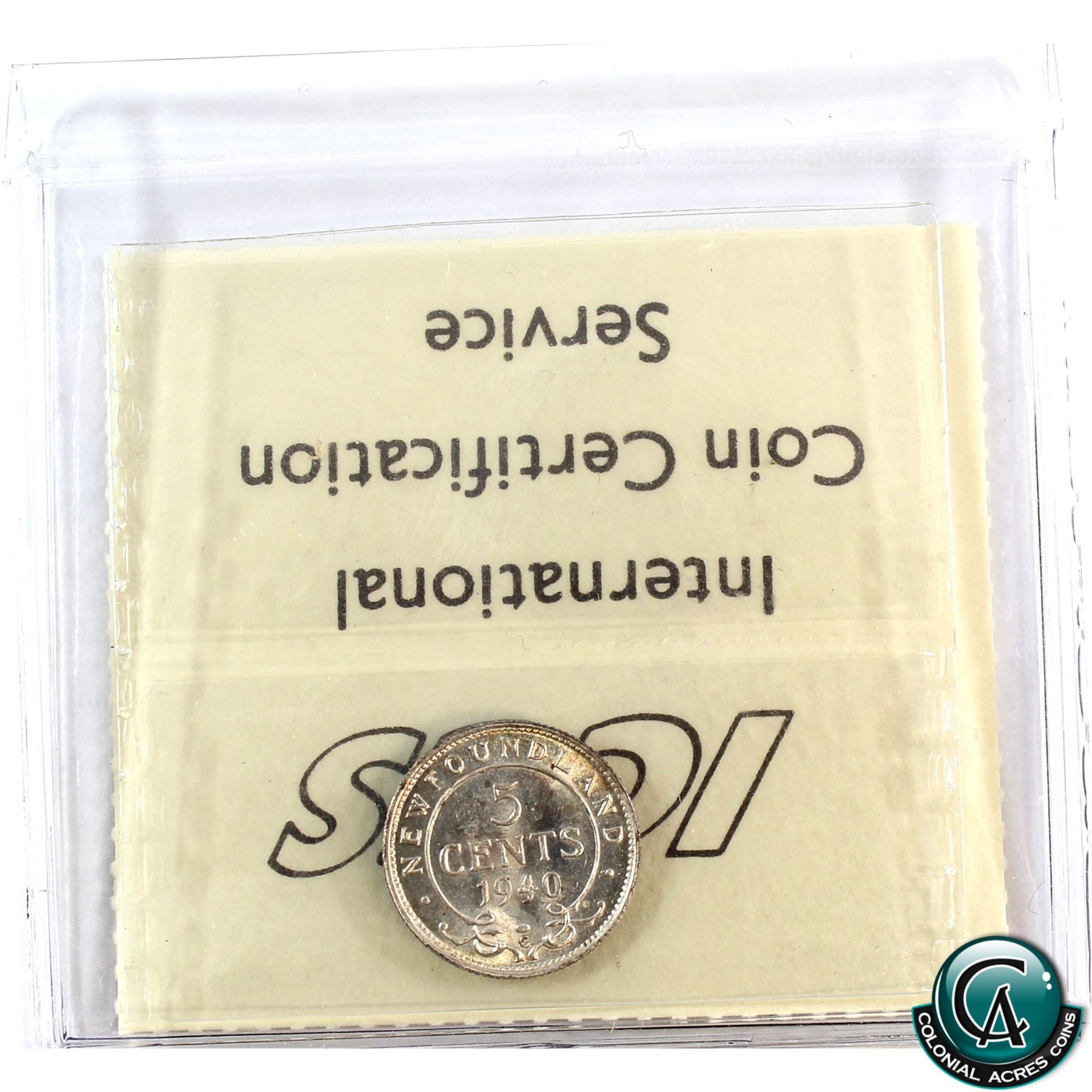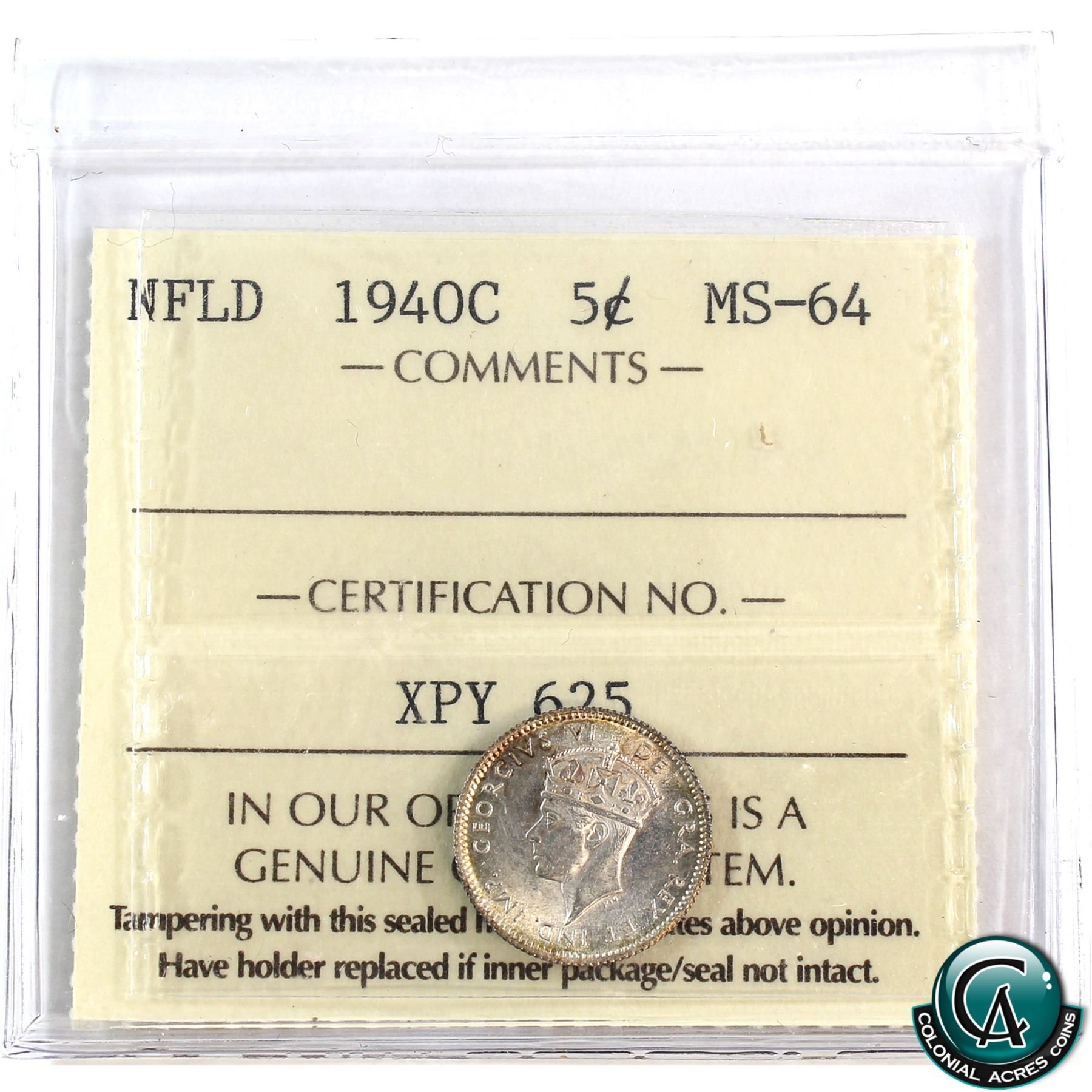 Newfoundland 5-cent 1940-C ICCS Certified MS-64. Only 3 graded Higher