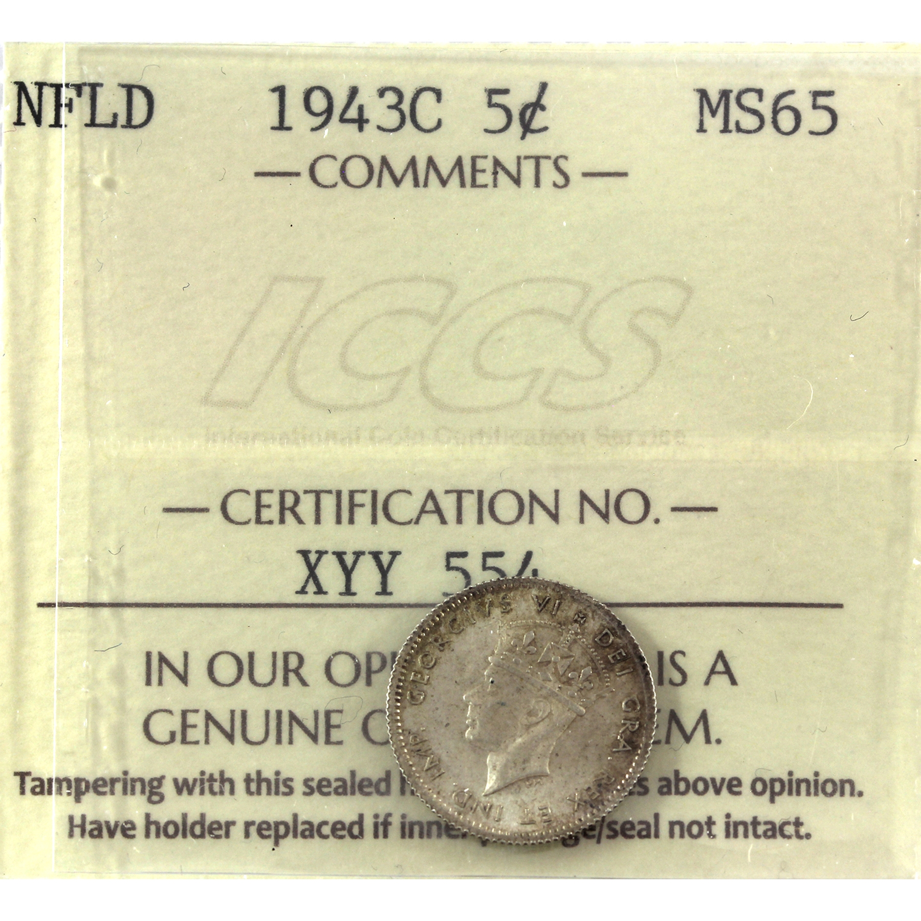 Newfoundland 5-cent 1943c ICCS MS65