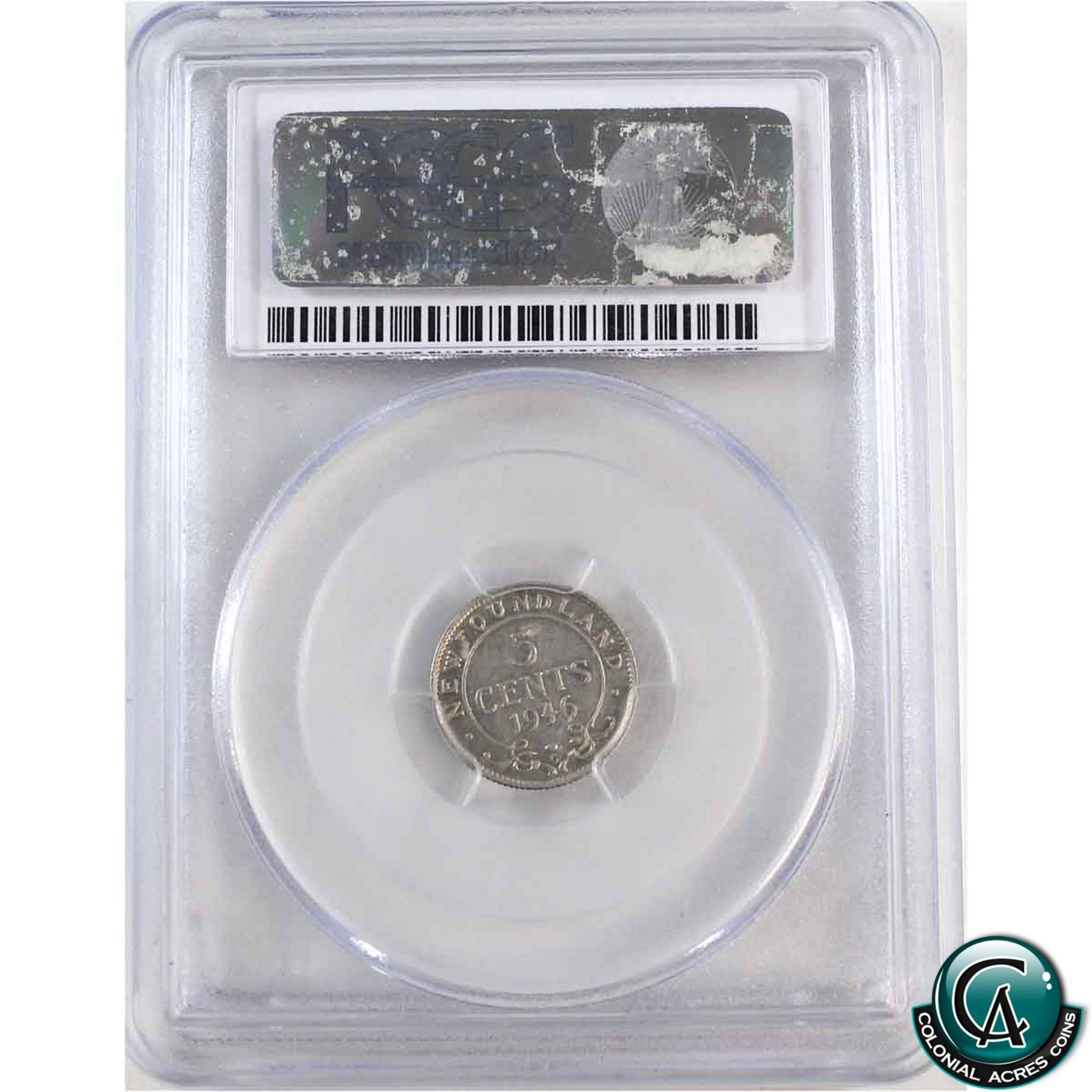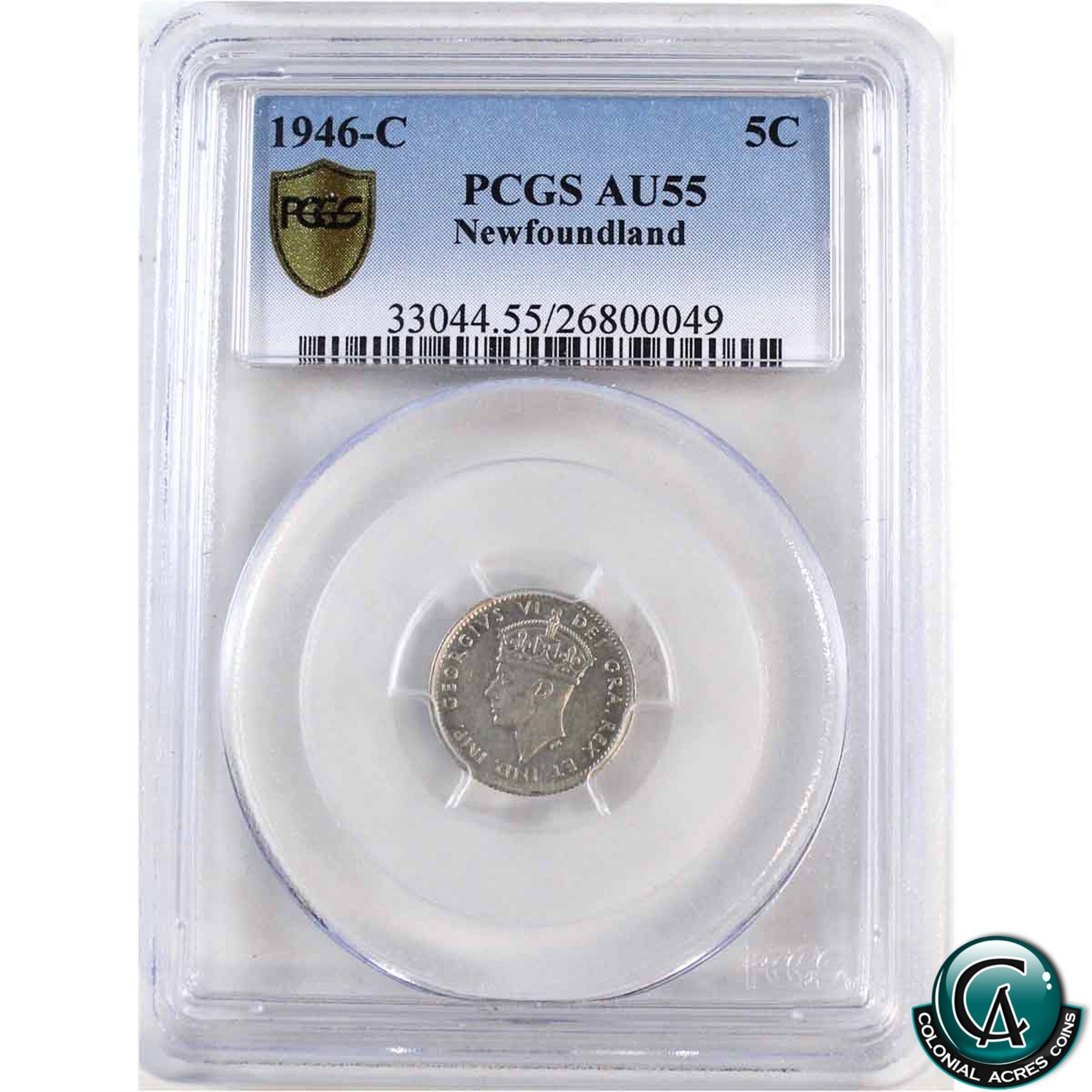 Newfoundland 5-cent 1946C PCGS Certified AU-55