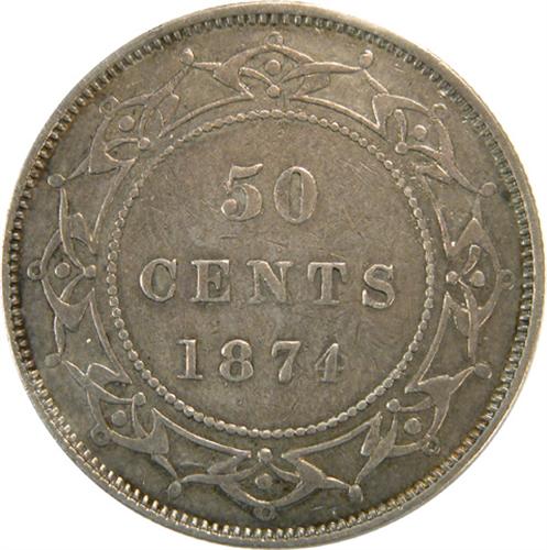 Newfoundland Fifty Cents 1874 VF-EF. Very lightly cleaned