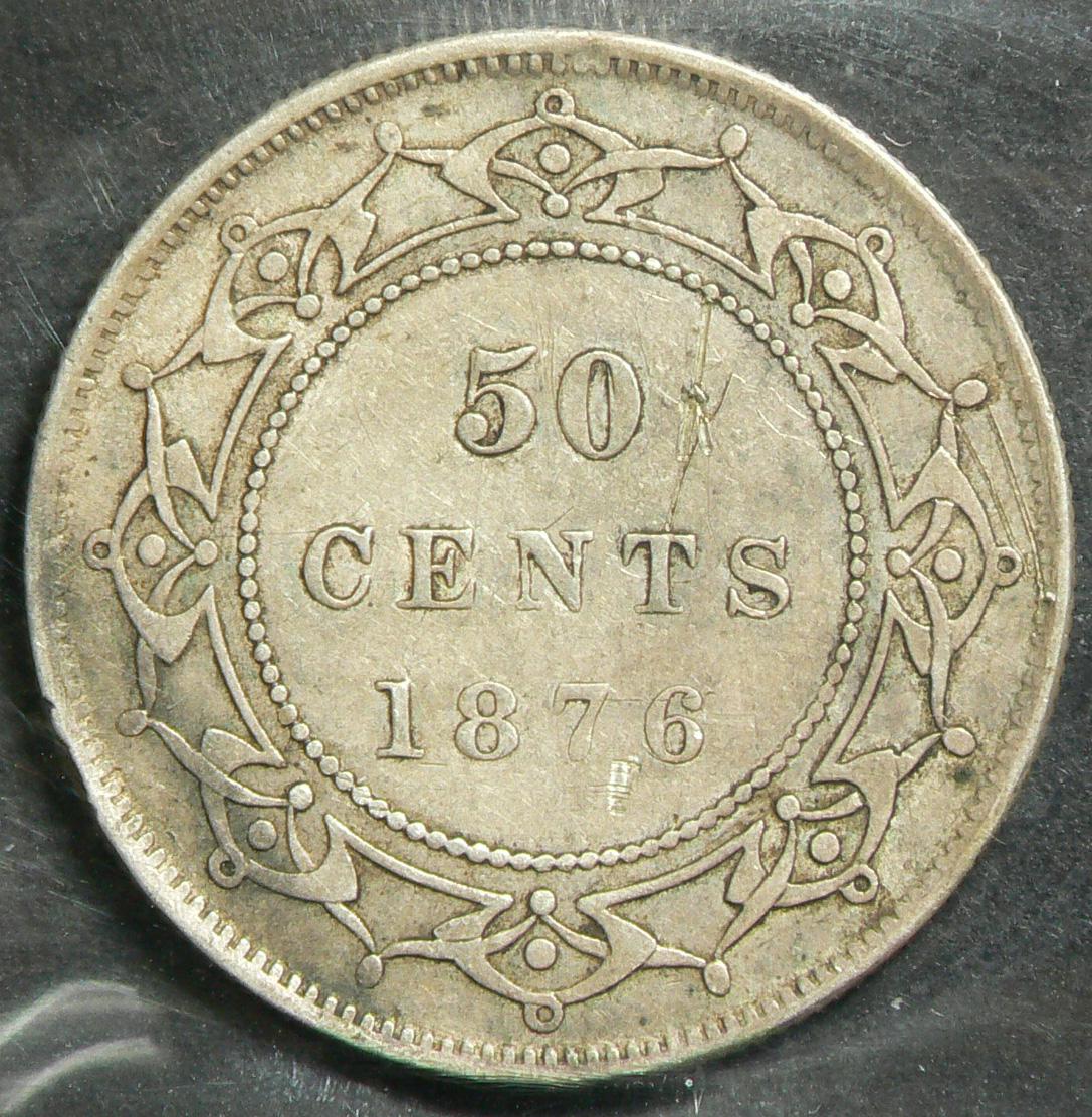 Newfoundland 50 Cents 1876H, graded ICCS VF-30 scratch.