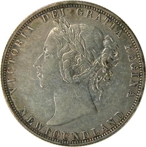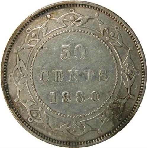 Newfoundland Fifty Cents 1880 VF. Light golden toning