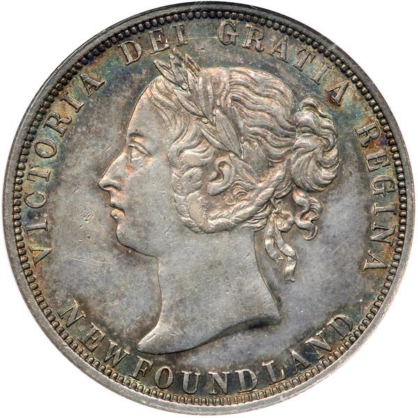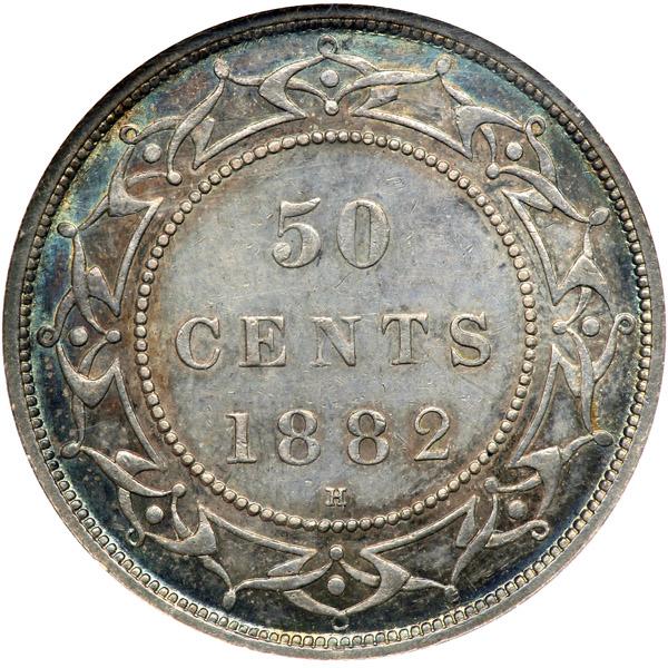 Newfoundland. 50 Cents, 1882-H. KM-6. Victoria. Attractively iridescent toning. NGC graded AU-55.
