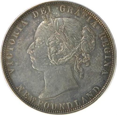 Newfoundland Fifty Cents 1882H PCGS SP-62. This is a nicely lustrous example of a rare Specimen Strike with light-medium golden gray toning with overtones and accents in iridescent ambers and violets. It is one of only nine Specimens certified by PCGS, six of which are higher