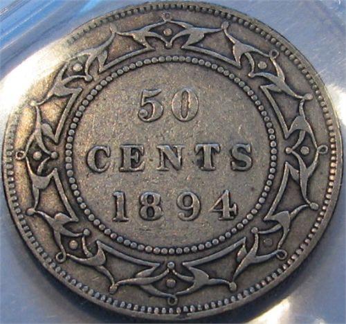 Newfoundland 50 Cents 1894 ICCS certified VF-20. Original toning.