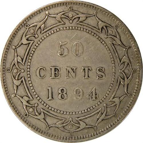 Newfoundland Fifty Cents 1894, VF-EF. Light gold-gray toning