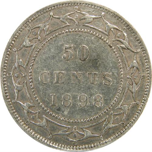 Newfoundland Fifty Cents 1898 Obverse 2, Small W CCCS EF-40. Another sharp example with pale golden toning