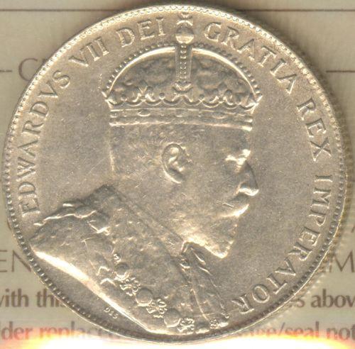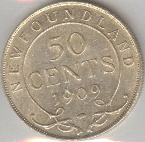 Newfoundland 50 Cents 1909 ICCS certified AU-50. Very close to mint state.
