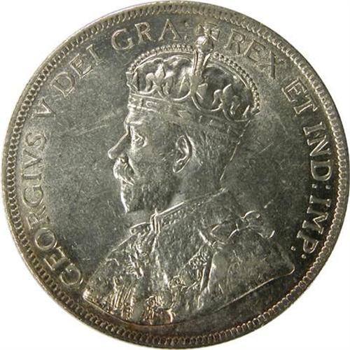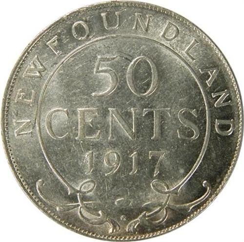 Newfoundland Fifty Cents 1917C AU-Uncirculated. A very sharp and near fully lustrous pale golden toned piece