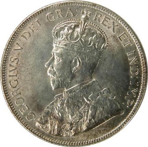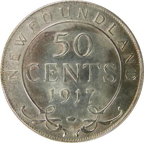 Newfoundland Fifty Cents 1917C Choice Uncirculated. This is a fully struck and strongly lustrous, pale golden toned piece