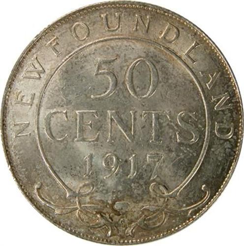 Newfoundland Fifty Cents 1917C Uncirculated. A fully struck and nicely lustrous, light golden toned piece