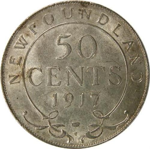 Newfoundland Fifty Cents 1917C Uncirculated. A fully struck and nicely lustrous, light golden toned piece