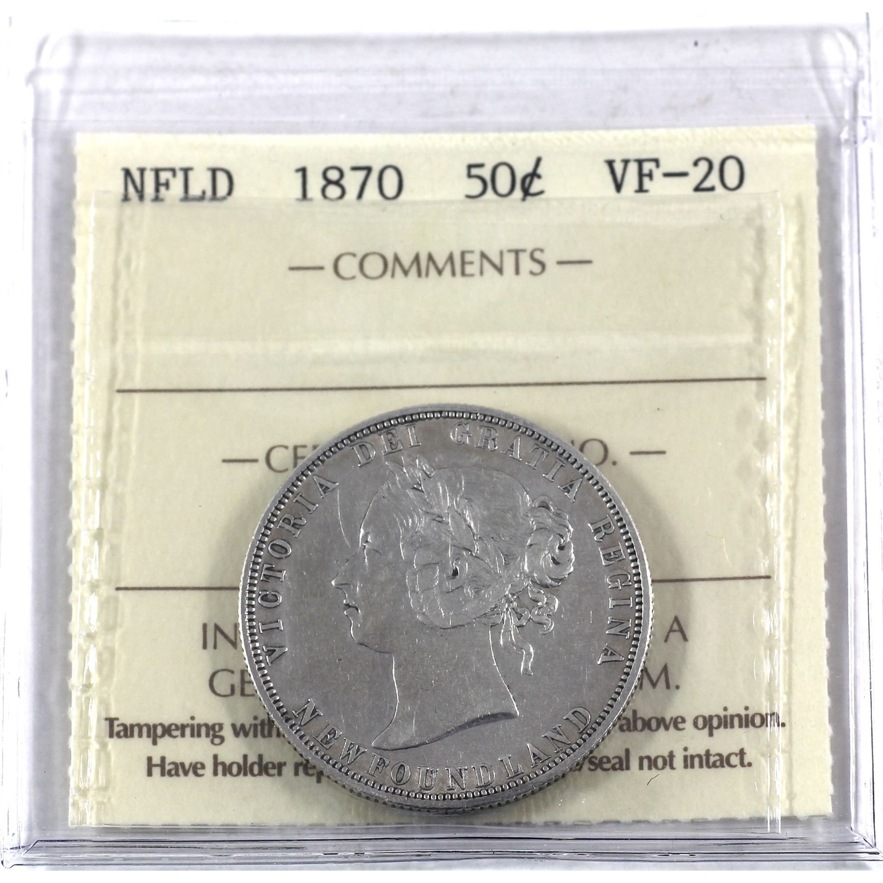 Newfoundland 50-cent 1870 ICCS Certified VF-20