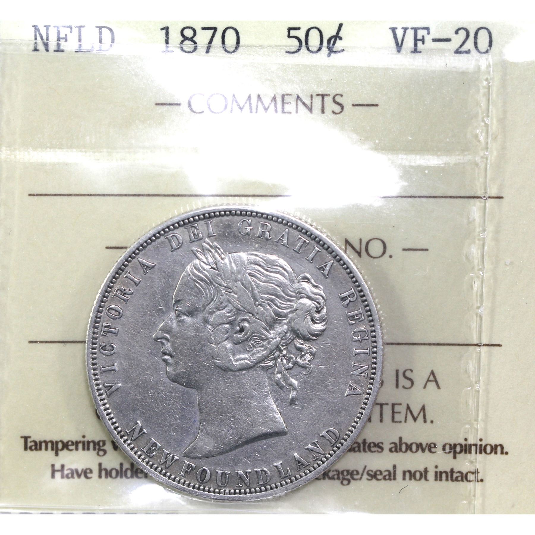 Newfoundland 50-cent 1870 ICCS Certified VF-20.