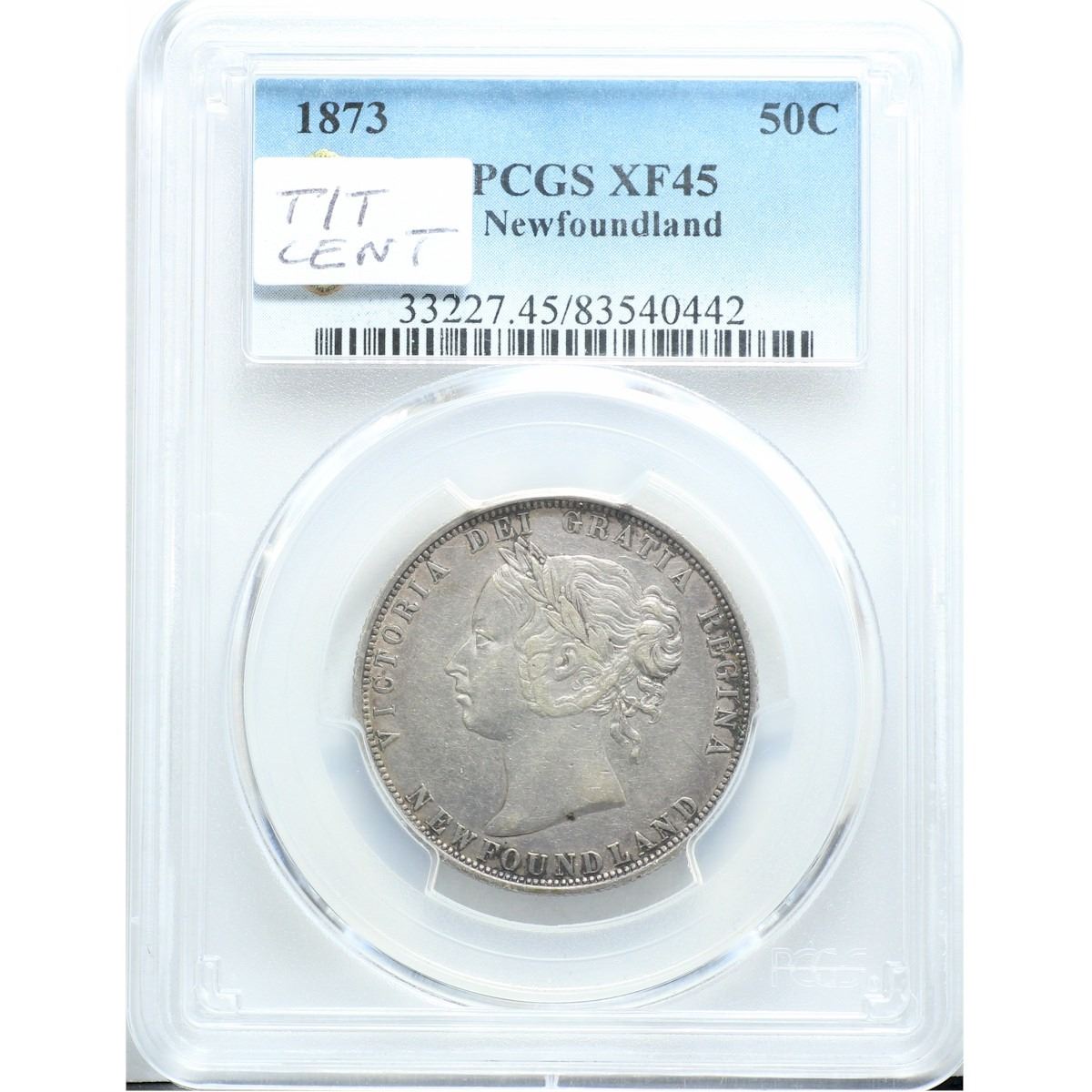 Newfoundland 50-cent 1873 Repunched T in CENTS PCGS Certified XF-45
