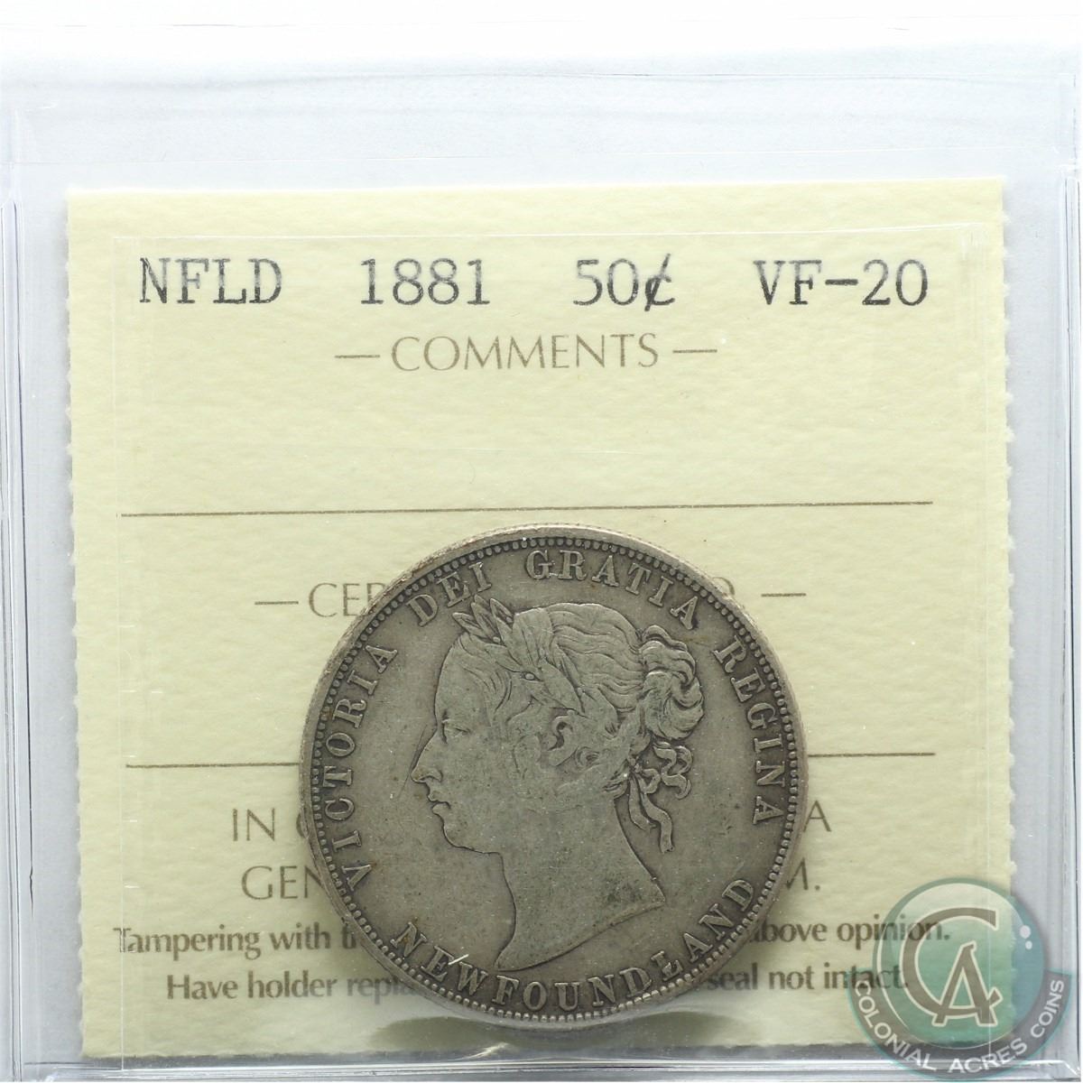 Newfoundland 50-cent 1881 ICCS Certified VF-20