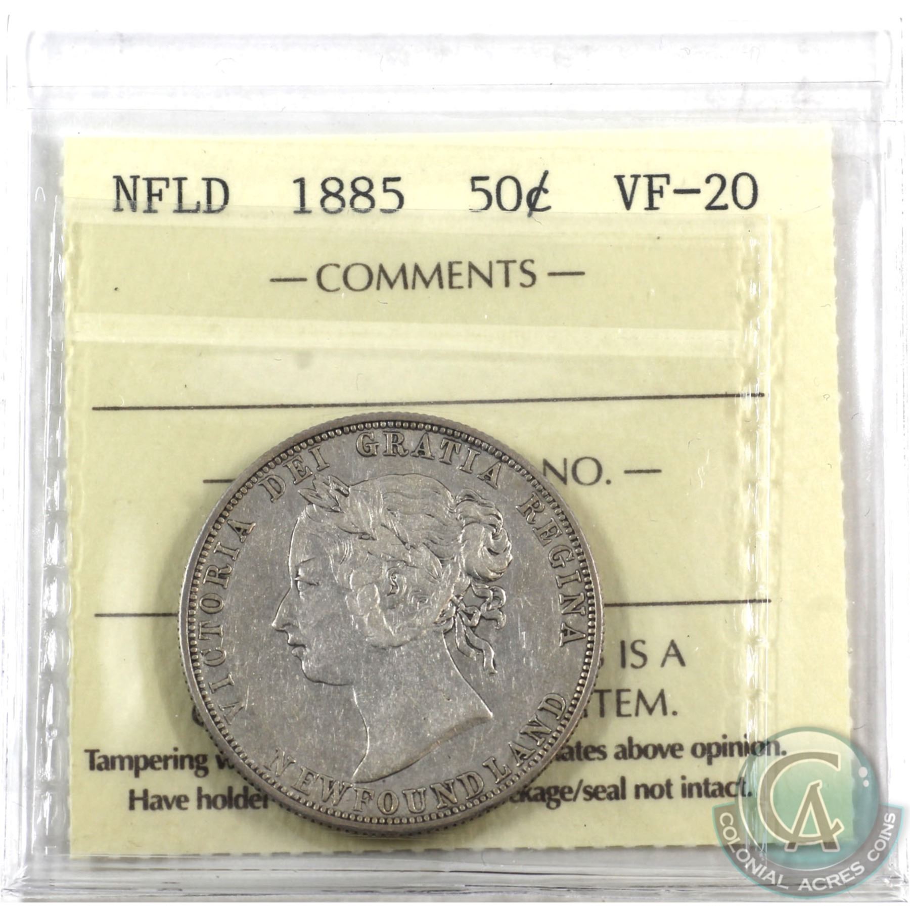 Newfoundland 50-cent 1885 ICCS Certified VF-20.