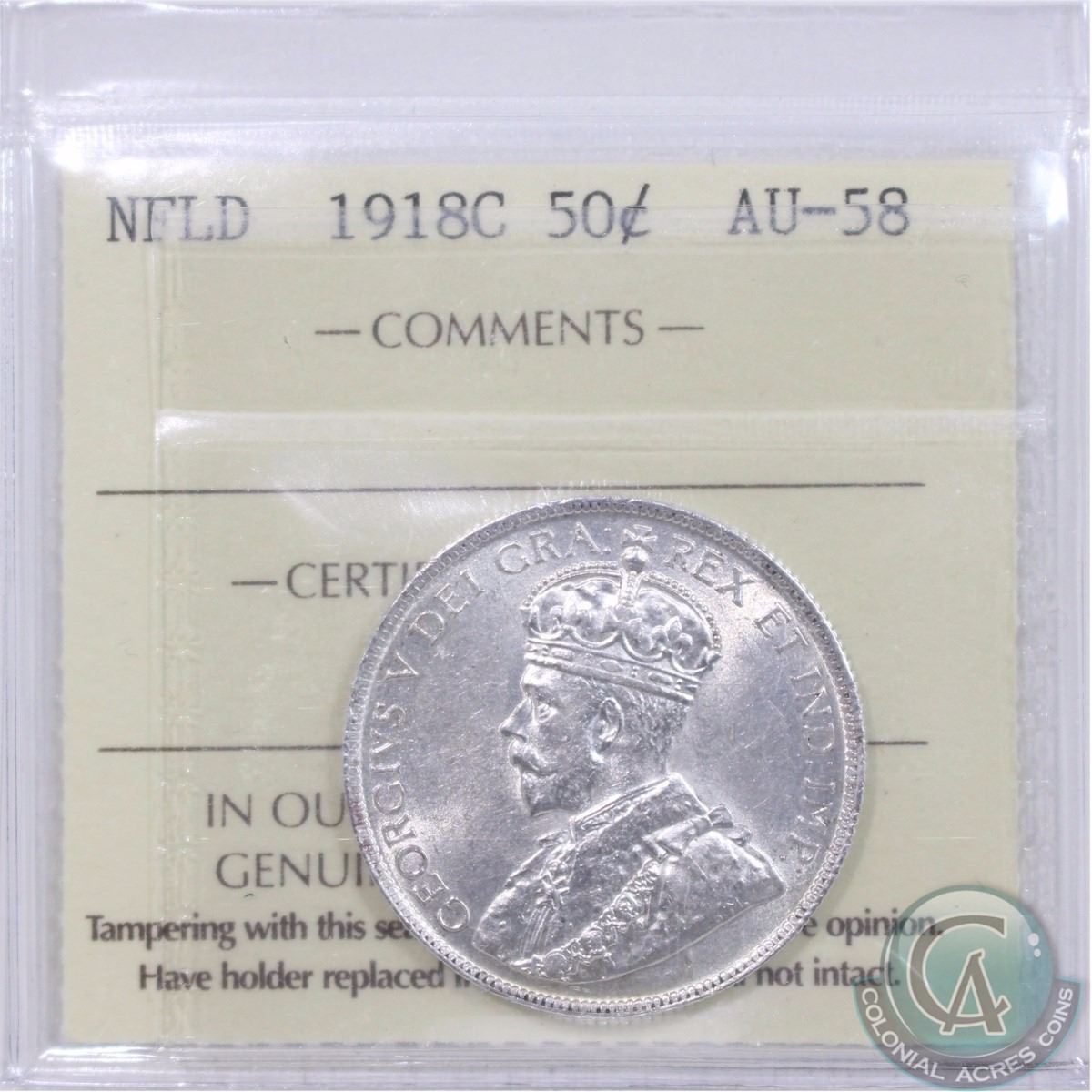 Newfoundland 50-cent 1918C ICCS Certified AU-58