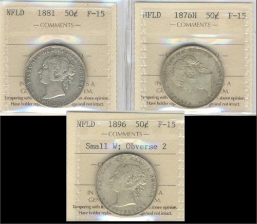 Newfoundland 50 cents 1876H, 1881 and 1896 Small W All ICCS F15