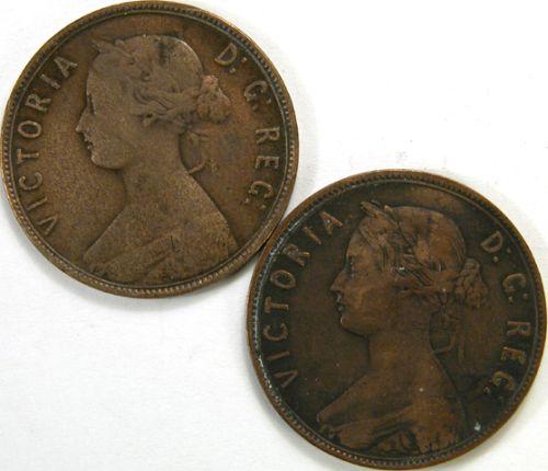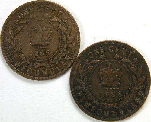 Newfoundland Large Cent 1885 and 1888. Two attractive, problem-free key dates, VG or better